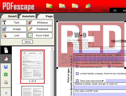 Wednesday, July 31, 2013 at 10:00AM UPDATE: Red Software is no longer affiliated with PDFescape, but this feature is still available in our RAD PDF technology. Edit your PDF with our online implementation, free of charge!