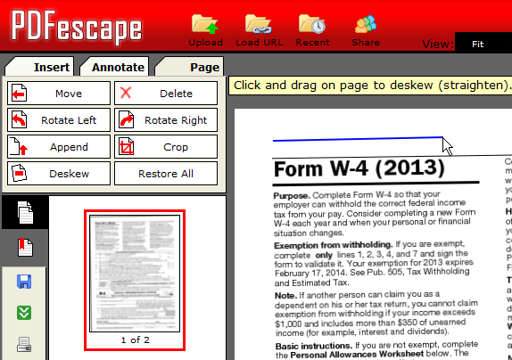 PDFescape's new free PDF straightening tool